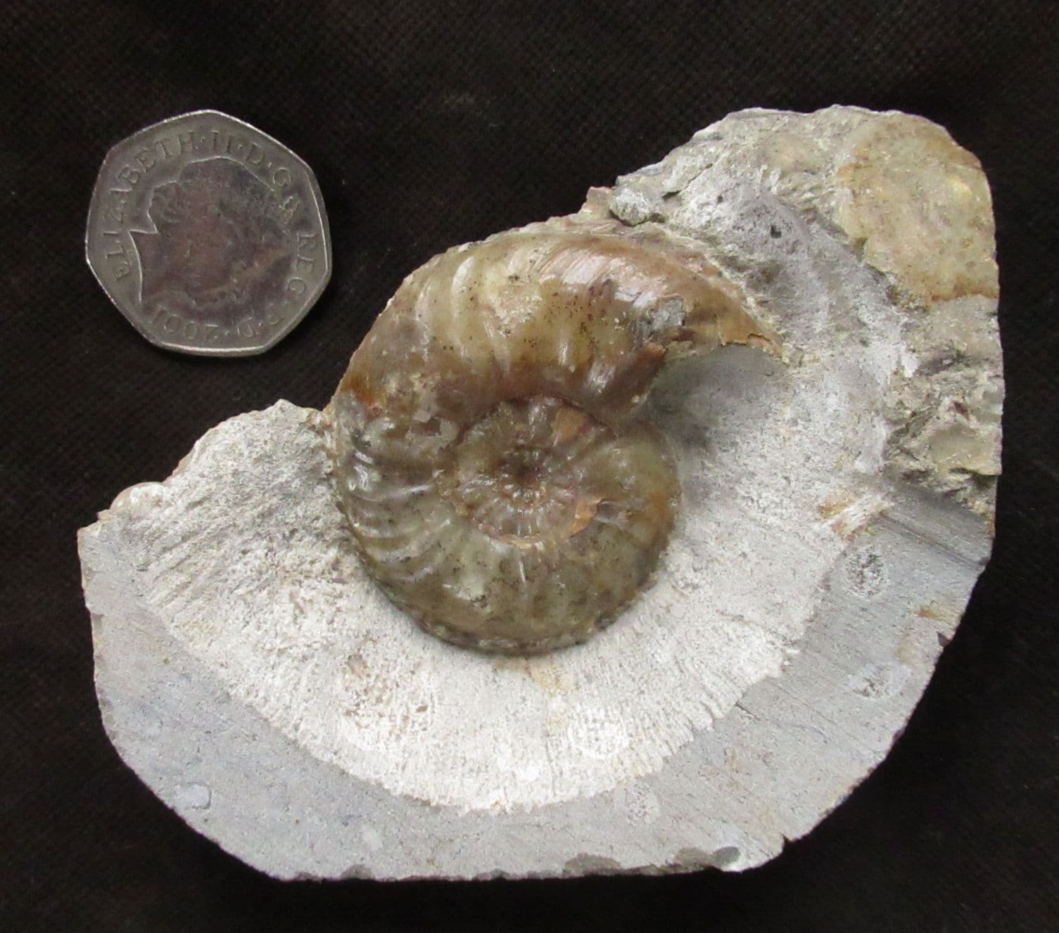 Fine 3D calcitic Ammonite on matrix. Developed to the protoconch. From a classic old locality.