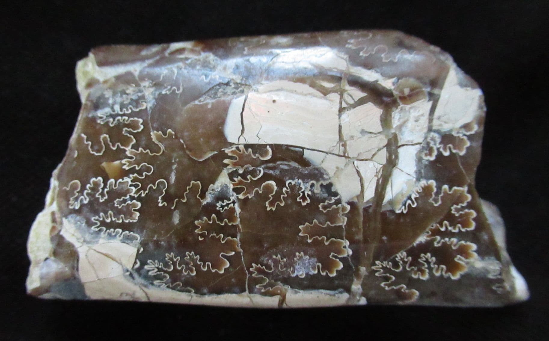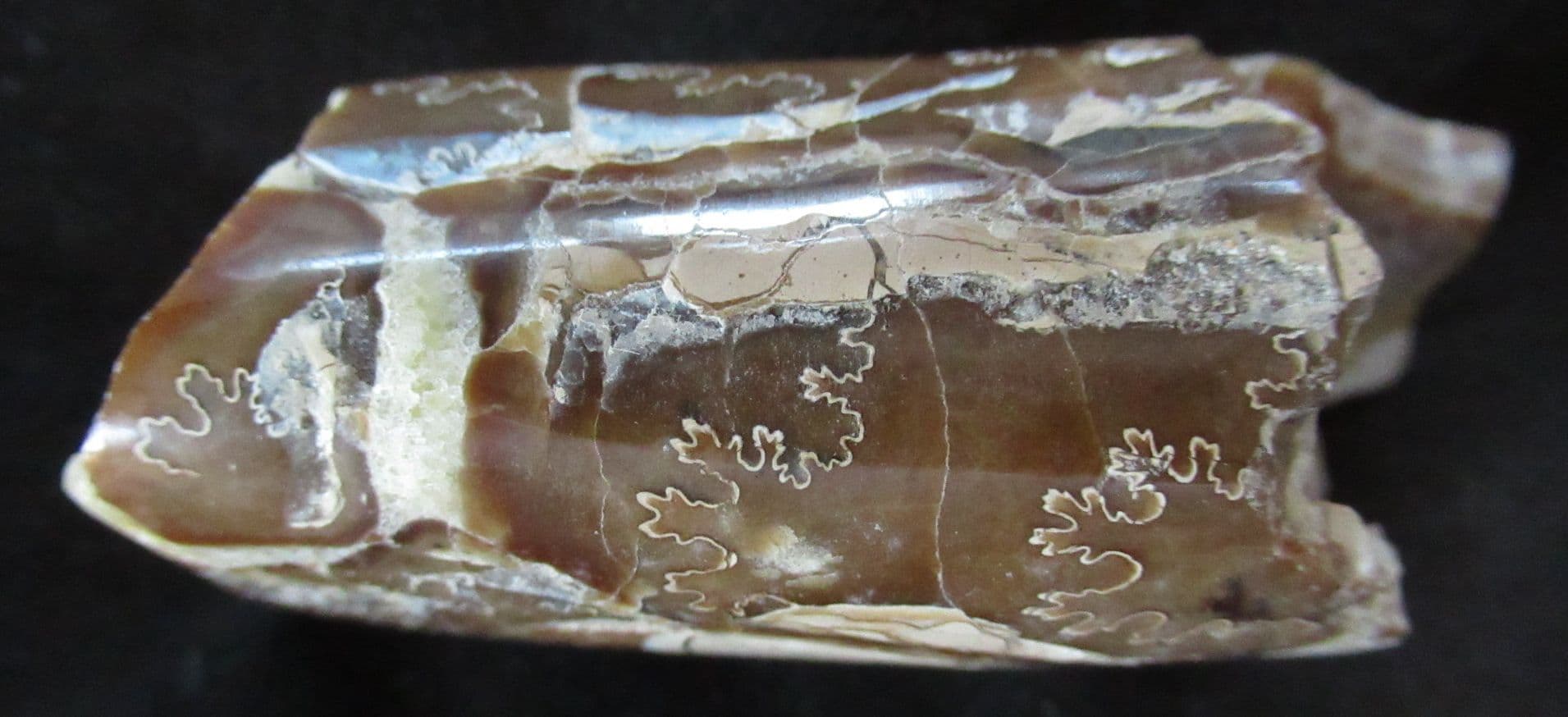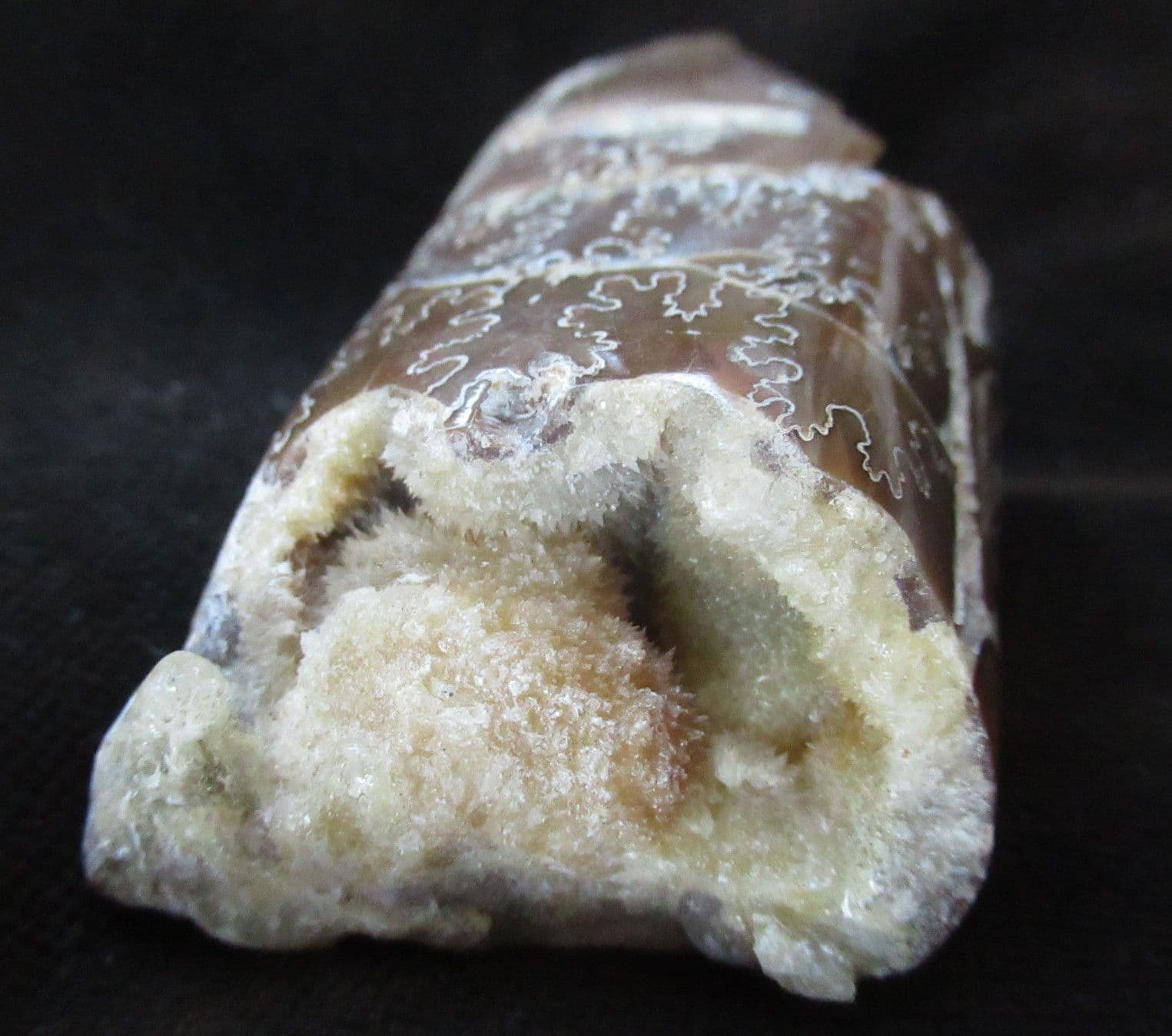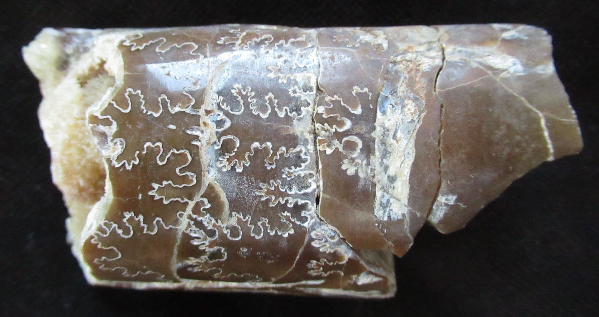 Matrix free section from a straight shelled heteromorph Ammonite. Where the iridescent shell has been removed the beautiful internal sutures are shown to perfection. A 'beauty'. These straight shelled Ammonites would have been powerful swift swimmers.