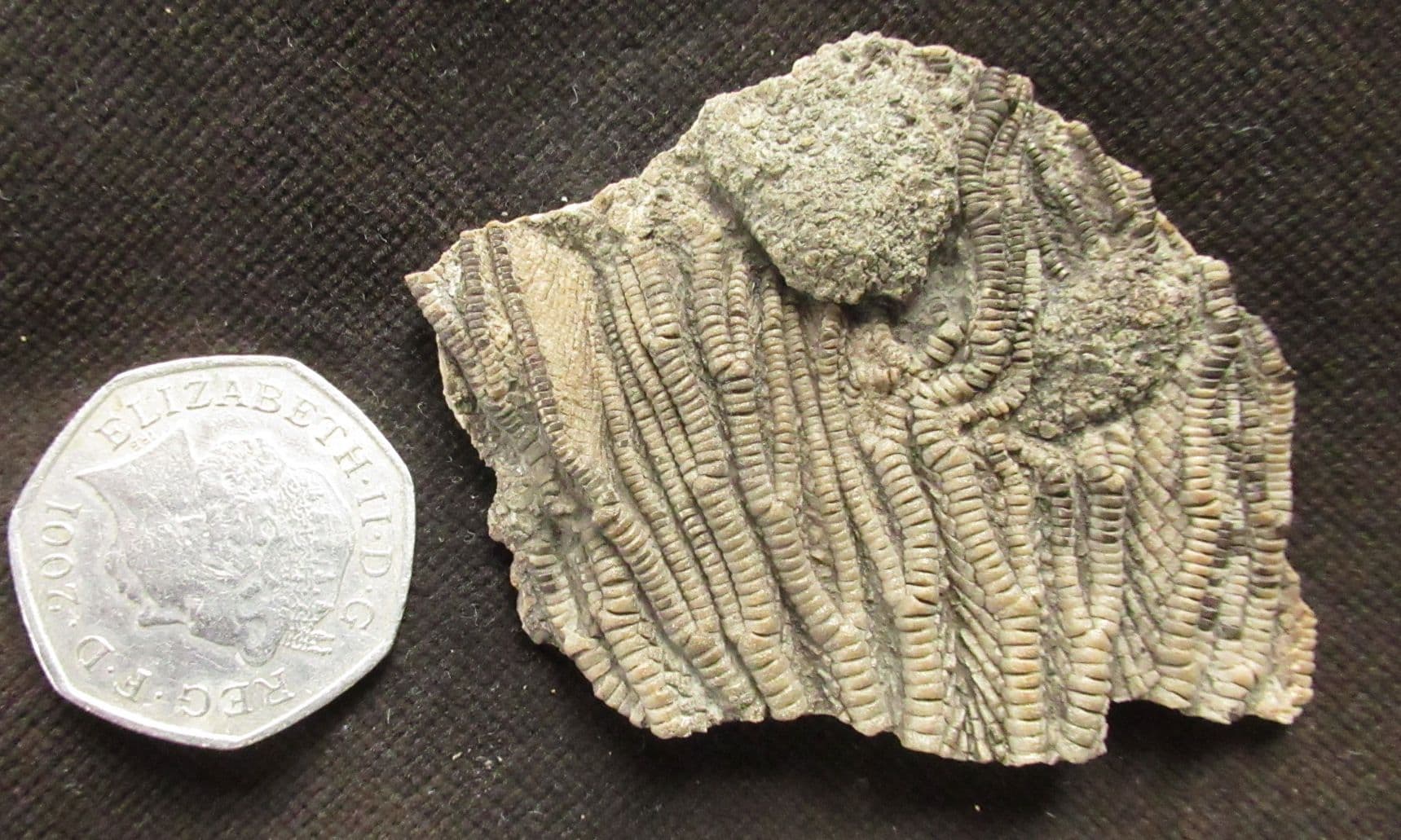 A piece of the famous 'Pentacrinite Bed' from Charmouth. Found in 1990.One surface plastered in 3D beautifully preserved crinoid arms. The detail under magnification is exquisite.