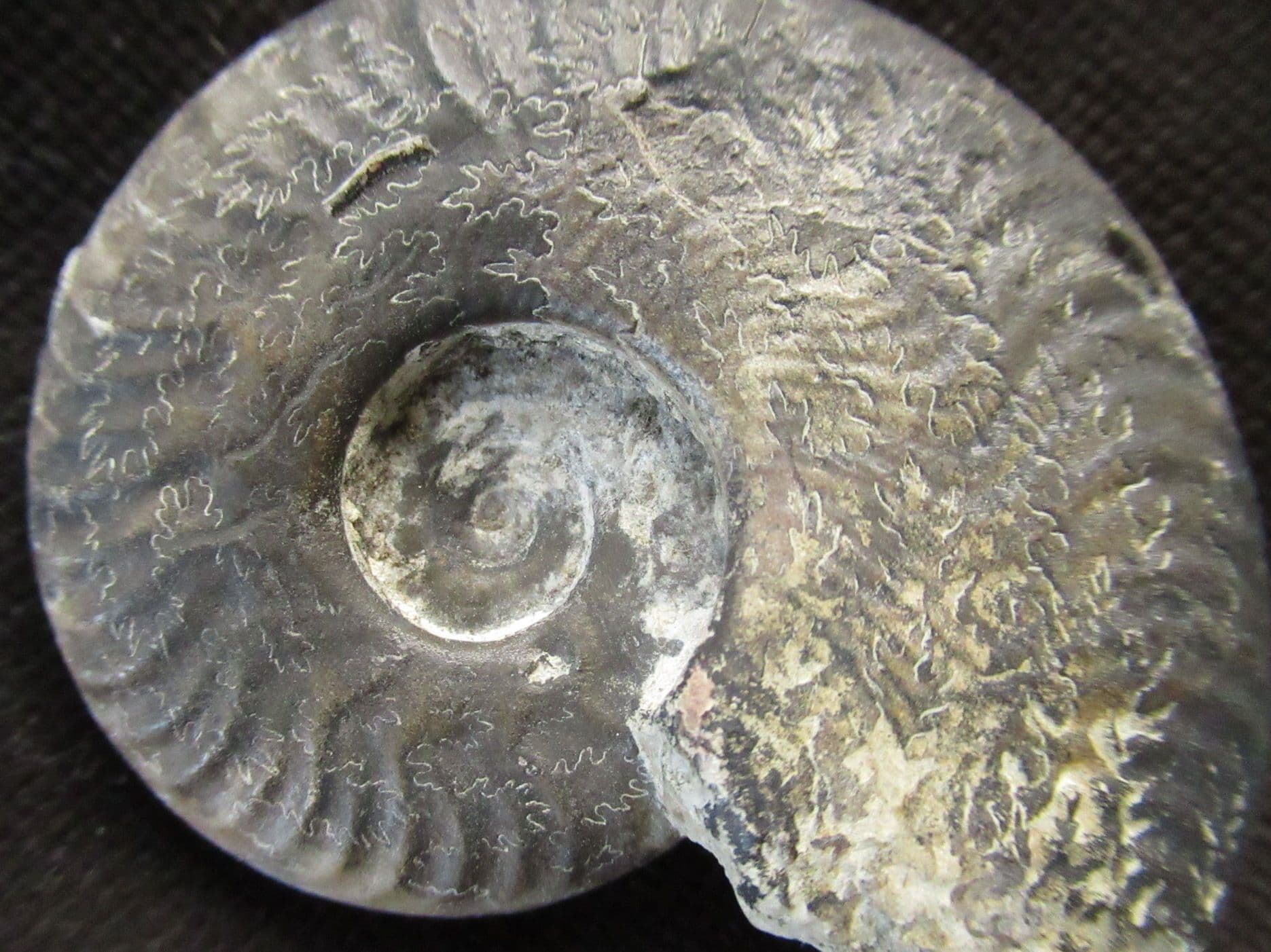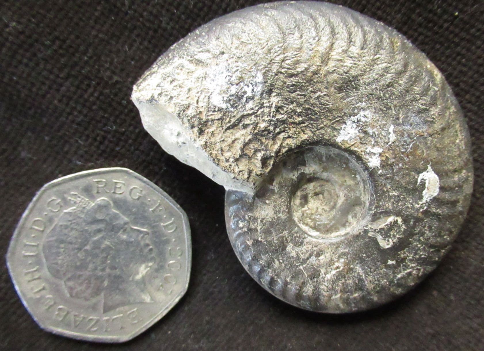 Very unusually coloured Ammonite from the 'Junction Bed'. The colour must be the result of some sort of staining in the rock or soil. To centre both sides and showing lovely sutures.