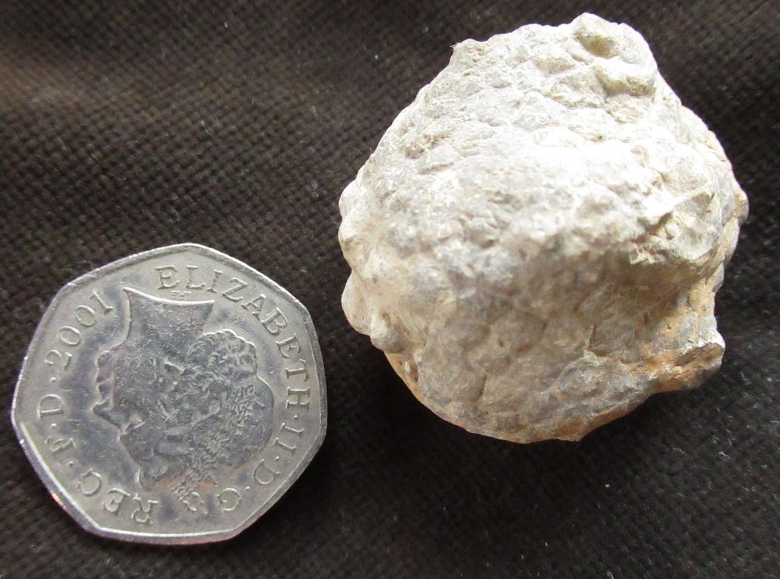 Beautifully preserved Crinoid calyx. All 5 arm bases preserved. Nice detail of all the plates. Collected by me as schoolboy back in 1969. The famous locality of Salthill Quarry is now a geological trail and an SSSI.Just about as good as they ever come.
