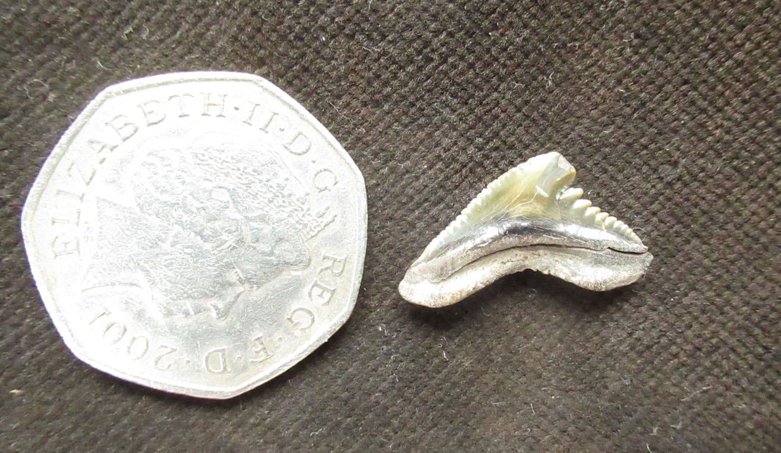 Matrix free tooth of a Tiger shark. Not perfect but very big for this locality.